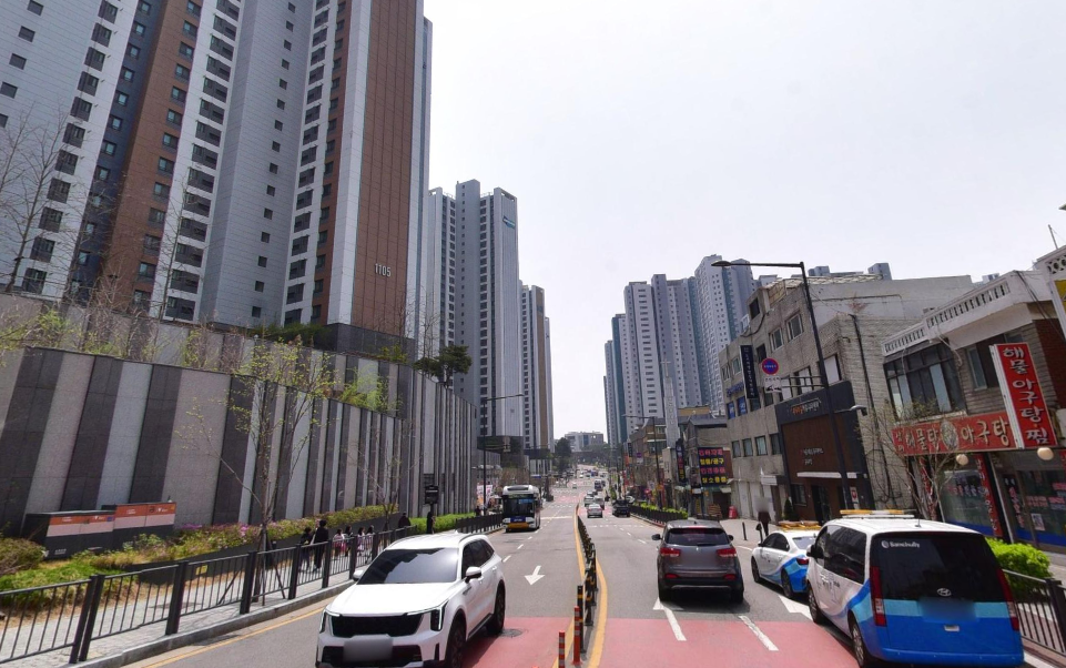 신축급의 대규모아파트 단지와 맞은 편에 위치한 상가주택의 상업시설의 건물 컨디션이 매우 큰 차이를 보이는 지역이다.