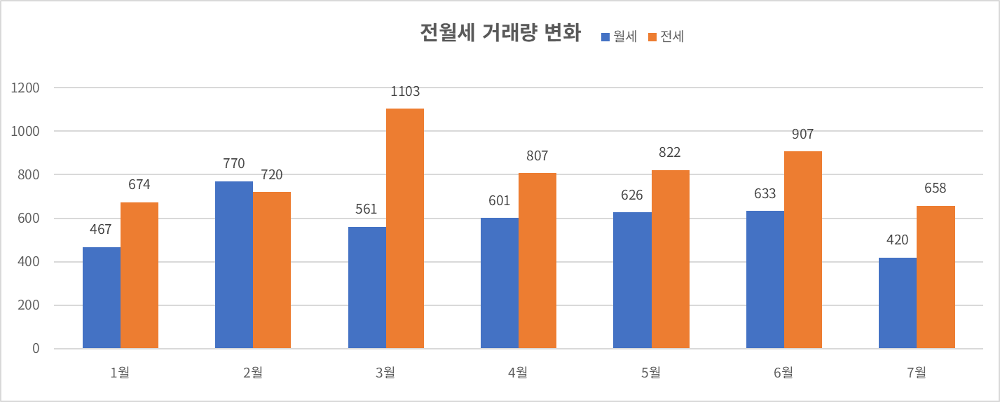 - 월세 거래량은 600건 이상의 흐름을 보이고 있다.
